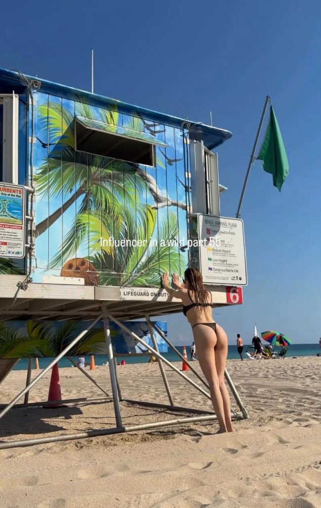 Widoki są oszałamiające, choć niekoniecznie mowa tu o krajobrazie. Caroline Derpienski w skąpym bikini, które więcej odsłania niż zasłania, pręży się niczym gwiazda "Słonecznego Patrolu". Ciało pokryte kroplami wody, pozy wyćwiczone do perfekcji i ten wzrok utkwiony w obiektywie – to wszystko wymaga nie lada poświęcenia. Podczas gdy słońce Florydy bezlitośnie smaga jej wypracowane ciało, ona nie odpuszcza, w pocie czoła walcząc o idealny kadr pod palmą.